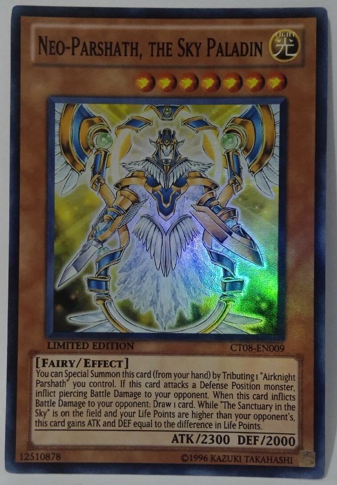 Yu-Gi-Oh! TCG Neo-Parshath, the Sky Paladin 2011 Collectors Tins CT08-EN009 LP. Includes: - Card without damages/minimum damage (see pictures for more information) Handling time: 3 business days Shipping: Economy Shipping: Around USA, Mexico, Canada, South America and Caribbean, 15 to 30 business days Standard Shipping: Around USA, Mexico, Canada, South America and Caribbean, 7 to 10 business days Important: Orders less than 15 USD with economy shipping don't include tracking number, buy products in this store more than 15 USD and you receive certified shipping (tracking number is provided ) Any question you have please ask me and i will response as soon as possible. “Import duties , taxes , and charges are not included in the item price or shipping cost. These charges are the buyer’s responsibility. Please check with your country’s customs office to determine what these additional costs will be prior to bidding or buying"