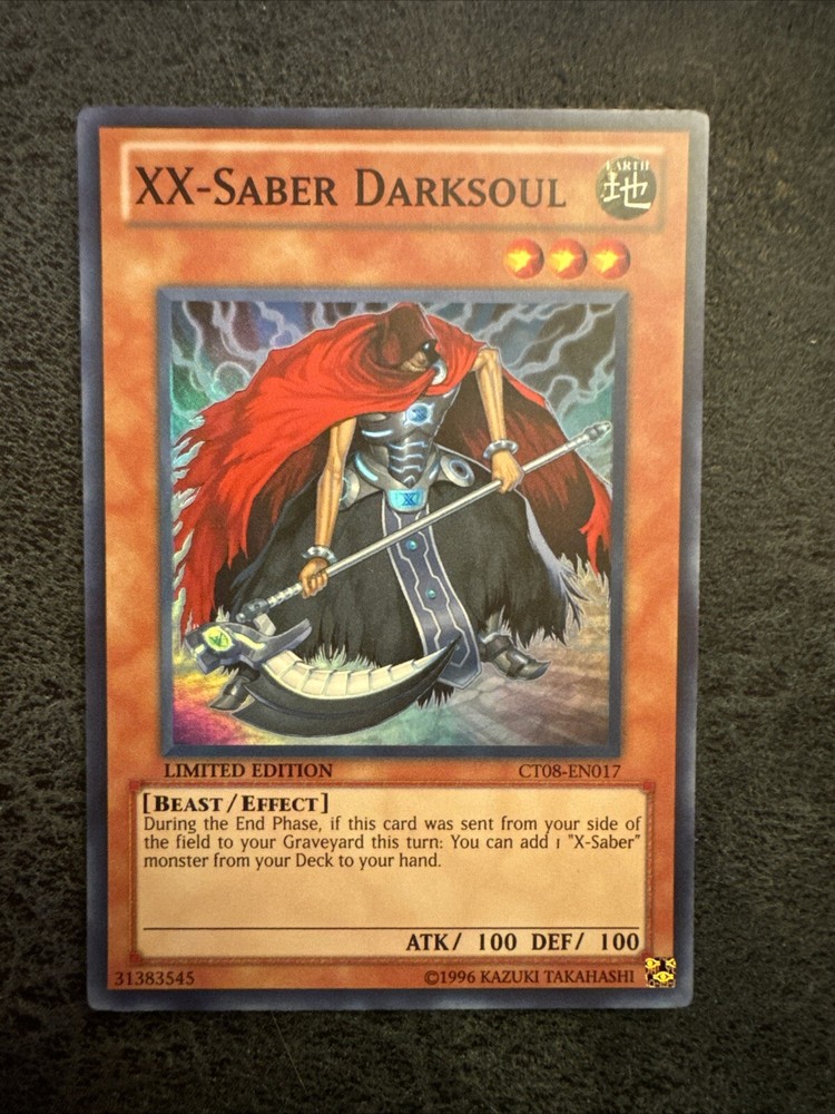 Yu-Gi-Oh! TCG XX-Saber Darksoul CT08-EN017 Limited Super Rare Near Mint. Condition is Ungraded. Shipped with USPS First Class Mail Letter.