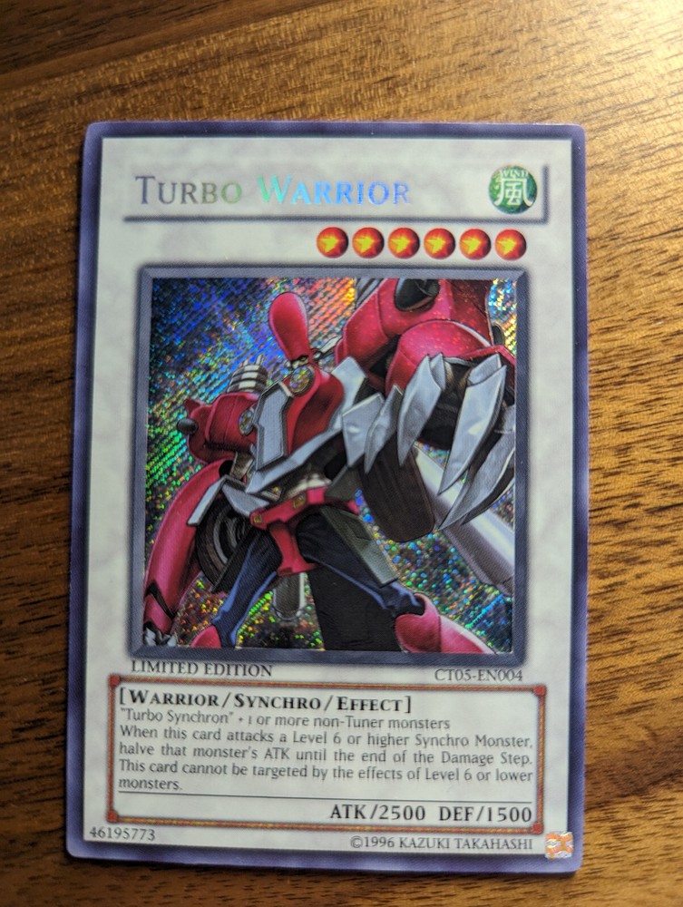 Yu-Gi-Oh! Turbo Warrior CT05-EN004 Limited Edition Secret Rare NM/M All photos are of the exact card you will get. I am trying to give as accurate description of the condition of the cards as possible, but my definition of the conditions might not be your definition so please look at the photo. If you need additional photos, feel free to request them and i'll be happy to upload more photos. NM/M = Near Mint / Mint VLP = Very lightly played LP = Lightly played MP = Moderately played HP = Heavy played DMG = Damaged Buy multiple cards to save on shipping! $1.50 + $0.50 for each additional card! I only ship to the United States. Thank you!