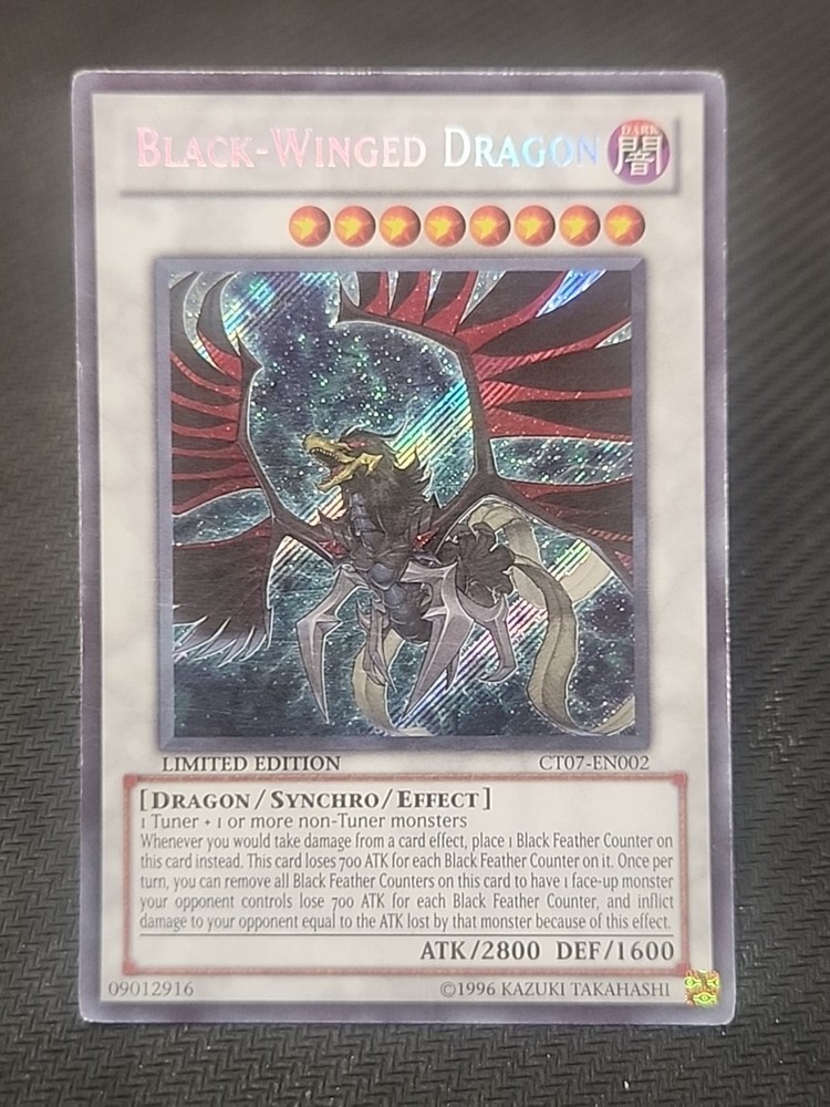 | Card Text | 1 Tuner + 1 or more non-Tuner monsters. // Whenever you would take damage from a card effect, place 1 Black Feather Counter on this card instead. This card loses 700 ATK for each Black Feather Counter on it. Once per turn, you can remove all Black Feather Counters on this card to have 1 face-up monster your opponent controls lose 700 ATK for each Black Feather Counter, and inflict damage to your opponent equal to the ATK lost by that monster because of this effect. |