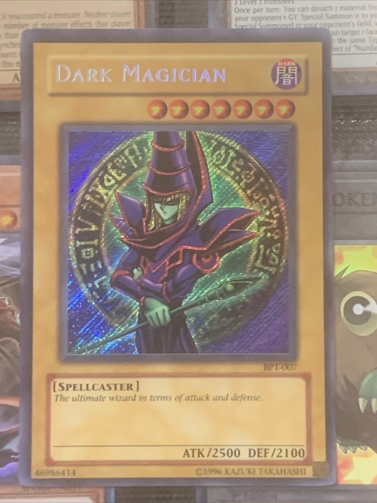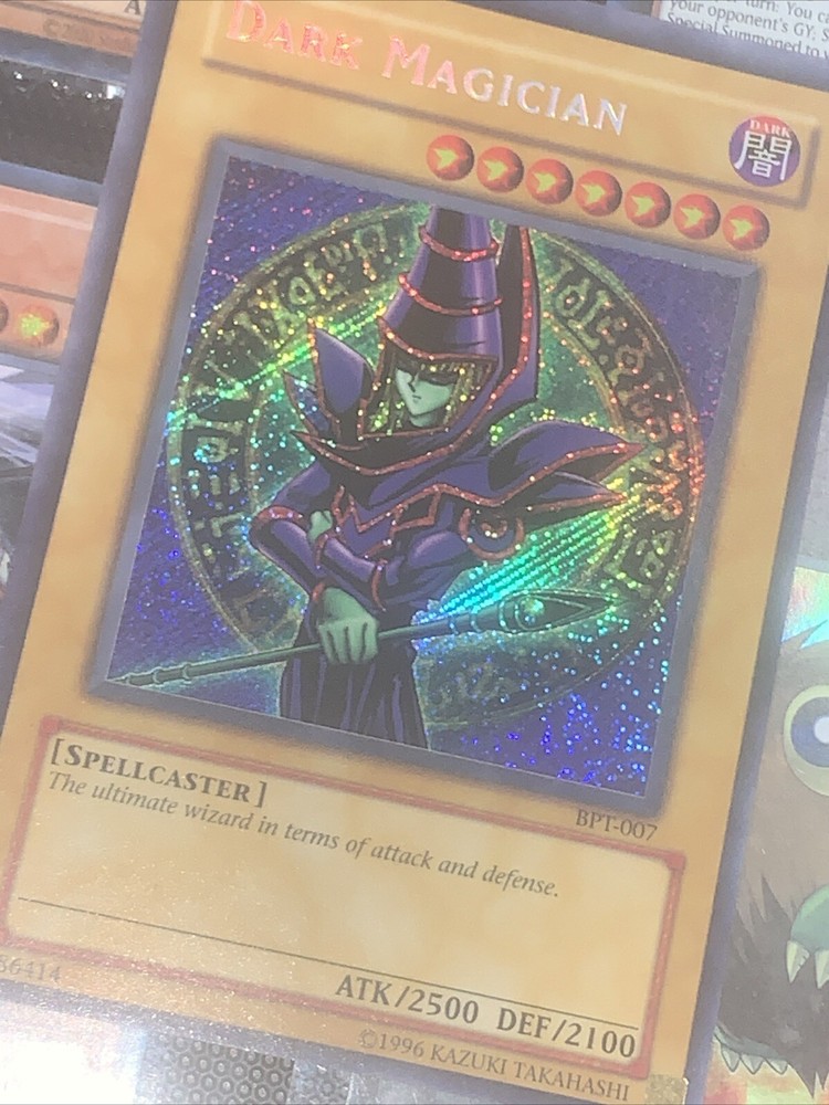 This rare and sought-after Dark Magician card from the Yu-Gi-Oh! TCG is a must-have for any serious collector. With its limited edition Secret Rare rarity and stunning Holo finish, this card is sure to be the centerpiece of any collection. The card features the iconic character of the Dark Magician, with the attribute of Darkness and card number BPT-007. Manufactured by Konami in 2003, this card is part of the 2003 Tin set and is in English language. It is a Normal card type and has been carefully preserved to ensure its quality. Don't miss out on the chance to add this rare card to your collection today. Very lightly played to near mint see pics fast.