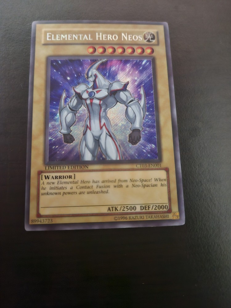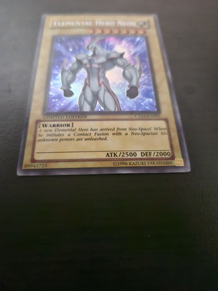 For sale is Elemental Hero Neos, card number CT03-EN001 from the Yu-Gi-Oh TCG. The card is a limited edition holographic with light signs of wear as shown in the pictures....