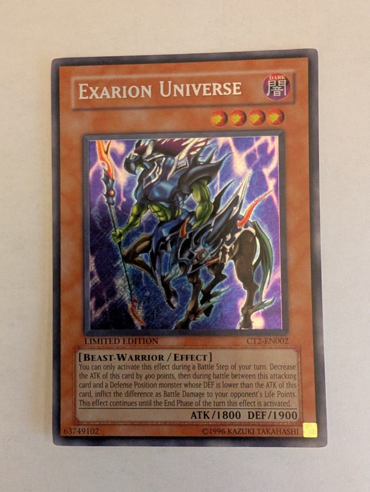 Dive into the Dark Attribute with the Exarion Universe card from the 2005 Collectors Tins set, a must-have for any Yu-Gi-Oh! TCG enthusiast. This Secret Rare, Limited Edition card features the enigmatic Aayla Secura and boasts an eye-catching Holo finish that makes it a standout addition to any collection.As a Beast-Warrior creature/monster type card, Exarion Universe brings a unique strategic advantage to the gaming table. Its limited edition status ensures exclusivity, adding significant value for collectors and players alike who appreciate the finer details in the realm of high-stakes card battles.