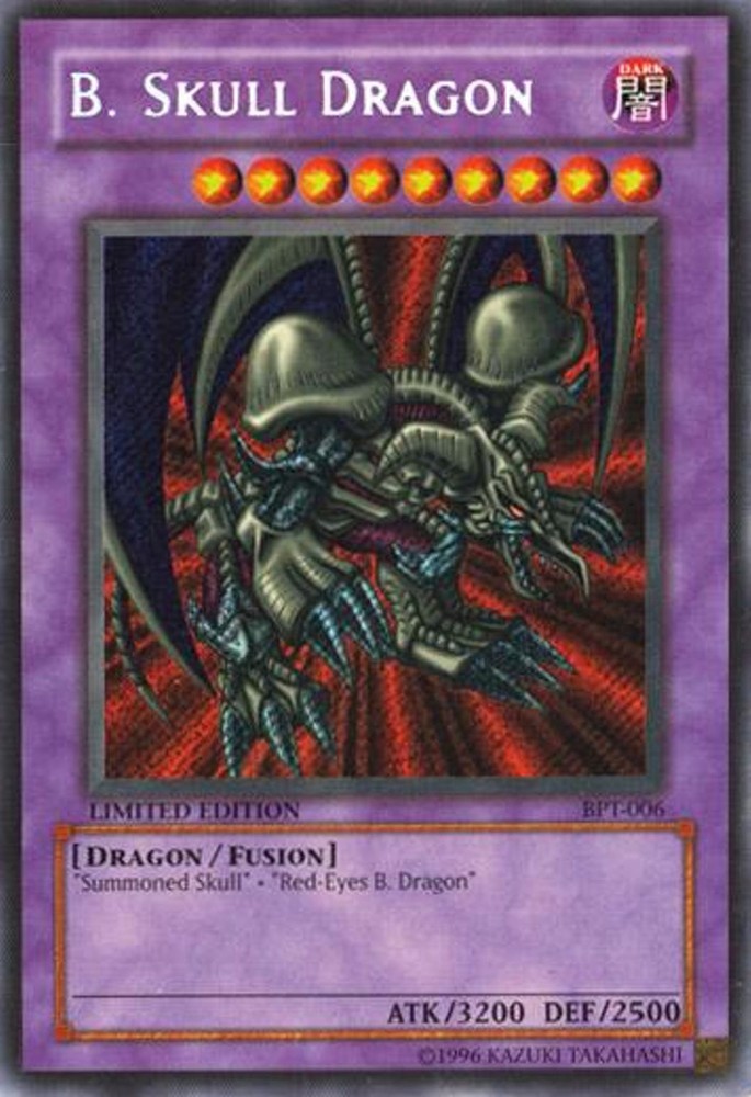 You are bidding on: Yugioh! B. Skull Dragon - BPT-006 - Secret Rare - Limited Edition Condition: Condition: Heavily Played | Language: English All photos are stock, unless mentioned otherwise. Card edition, rarity, etc. are listed in the title and description. Cards are in English unless otherwise stated in title or description. Items will be shipped within 1 business day upon receiving cleared payment. We ship Monday through Saturday in order to get the item(s) to you as quickly as possible Before leaving neutral or negative feedback, please contact us beforehand so we can discuss the issue. Feel free to message me with any questions you have regarding this auction or my policies. Shipping Options: USPS Mail - $0.99 Orders $29.99 (exc. sales tax) and under will be sent in a white envelope in a card saver + soft sleeve using eBay's Standard Envelope tracking service. Orders $30.00 (exc. sales tax) and over will be sent with free USPS tracking information w/ toploader + soft sleeve. Priority Mail - $9.99 2-3 Day shipping Orders will be shipped in a flat rate envelope in a toploader + soft sleeve. Priority Express Mail - $29.99 1-2 Day shipping Orders will be shipped in a flate rate envelope in a toploader + soft sleeve. *All orders over $100 will be sent with free insurance. All orders over $250 will be sent with free insurance and signature confirmation.* Card Grading: Near Mint (NM) - Cards with this grade will show minimal to no wear from shuffling, play or handling and can have a nearly unmarked surface, crisp corners and unblemished edges outside of a few minimal flaws. Holographic cards are more scrutinized than non-holo cards. Lightly Played (LP) - Cards with this grade may have a few dings, light playwear and/or edgewear. A crease or bend is acceptable if it is less than approximately 1/2 inch in size and is only visible on one side. Moderately Played (MP) - Cards with this grade may have dings, playwear and/or edgwear, 1 or 2 creases or bends that do not go through the length of the card. Heavily Played (HP) - Cards with this grade may have dings, playwear and/or edgwear, creases or bends that may go the length of the card, markings and/or coloring, tears on the edges. Despite being the lowest of grading, these cards are still tournament legal. If you receive a card not in the stated condition, please contact us to return the item for a full refund. Thank you for buying.