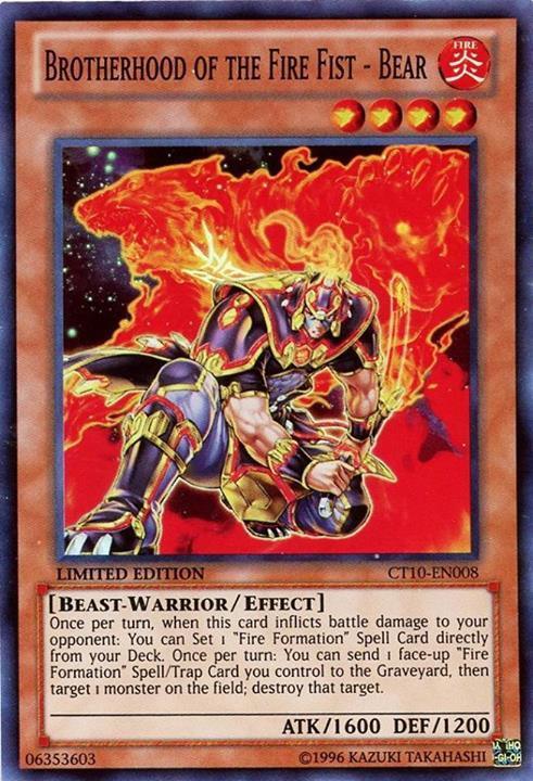 You are bidding on: Yugioh! Brotherhood of the Fire Fist - Bear - CT10-EN008 - Super Rare - Limited Edition Condition: Condition: Moderately Played | Language: English All photos are stock, unless mentioned otherwise. Card edition, rarity, etc. are listed in the title and description. Cards are in English unless otherwise stated in title or description. Items will be shipped within 1 business day upon receiving cleared payment. We ship Monday through Saturday in order to get the item(s) to you as quickly as possible Before leaving neutral or negative feedback, please contact us beforehand so we can discuss the issue. Feel free to message me with any questions you have regarding this auction or my policies. Shipping Options: USPS Mail - $0.99 Orders $29.99 (exc. sales tax) and under will be sent in a white envelope in a card saver + soft sleeve using eBay's Standard Envelope tracking service. Orders $30.00 (exc. sales tax) and over will be sent with free USPS tracking information w/ toploader + soft sleeve. Priority Mail - $9.99 2-3 Day shipping Orders will be shipped in a flat rate envelope in a toploader + soft sleeve. Priority Express Mail - $29.99 1-2 Day shipping Orders will be shipped in a flate rate envelope in a toploader + soft sleeve. *All orders over $100 will be sent with free insurance. All orders over $250 will be sent with free insurance and signature confirmation.* Card Grading: Near Mint (NM) - Cards with this grade will show minimal to no wear from shuffling, play or handling and can have a nearly unmarked surface, crisp corners and unblemished edges outside of a few minimal flaws. Holographic cards are more scrutinized than non-holo cards. Lightly Played (LP) - Cards with this grade may have a few dings, light playwear and/or edgewear. A crease or bend is acceptable if it is less than approximately 1/2 inch in size and is only visible on one side. Moderately Played (MP) - Cards with this grade may have dings, playwear and/or edgwear, 1 or 2 creases or bends that do not go through the length of the card. Heavily Played (HP) - Cards with this grade may have dings, playwear and/or edgwear, creases or bends that may go the length of the card, markings and/or coloring, tears on the edges. Despite being the lowest of grading, these cards are still tournament legal. If you receive a card not in the stated condition, please contact us to return the item for a full refund. Thank you for buying.