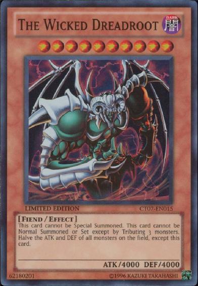 You are bidding on: Yugioh! The Wicked Dreadroot - CT07-EN015 - Super Rare - Limited Edition Condition: Condition: Moderately Played | Language: English All photos are stock, unless mentioned otherwise. Card edition, rarity, etc. are listed in the title and description. Cards are in English unless otherwise stated in title or description. Items will be shipped within 1 business day upon receiving cleared payment. We ship Monday through Saturday in order to get the item(s) to you as quickly as possible Before leaving neutral or negative feedback, please contact us beforehand so we can discuss the issue. Feel free to message me with any questions you have regarding this auction or my policies. Shipping Options: USPS Mail - $0.99 Orders $29.99 (exc. sales tax) and under will be sent in a white envelope in a card saver + soft sleeve using eBay's Standard Envelope tracking service. Orders $30.00 (exc. sales tax) and over will be sent with free USPS tracking information w/ toploader + soft sleeve. Priority Mail - $9.99 2-3 Day shipping Orders will be shipped in a flat rate envelope in a toploader + soft sleeve. Priority Express Mail - $29.99 1-2 Day shipping Orders will be shipped in a flate rate envelope in a toploader + soft sleeve. *All orders over $100 will be sent with free insurance. All orders over $250 will be sent with free insurance and signature confirmation.* Card Grading: Near Mint (NM) - Cards with this grade will show minimal to no wear from shuffling, play or handling and can have a nearly unmarked surface, crisp corners and unblemished edges outside of a few minimal flaws. Holographic cards are more scrutinized than non-holo cards. Lightly Played (LP) - Cards with this grade may have a few dings, light playwear and/or edgewear. A crease or bend is acceptable if it is less than approximately 1/2 inch in size and is only visible on one side. Moderately Played (MP) - Cards with this grade may have dings, playwear and/or edgwear, 1 or 2 creases or bends that do not go through the length of the card. Heavily Played (HP) - Cards with this grade may have dings, playwear and/or edgwear, creases or bends that may go the length of the card, markings and/or coloring, tears on the edges. Despite being the lowest of grading, these cards are still tournament legal. If you receive a card not in the stated condition, please contact us to return the item for a full refund. Thank you for buying.