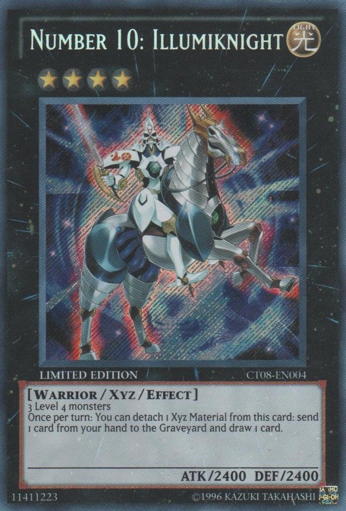You are purchasing: Yugioh! Number 10: Illumiknight - CT08-EN004 - Secret Rare - Limited Edition Condition: Near Mint | Language: English All photos are stock, unless mentioned otherwise. Card edition, rarity, etc. is listed in the title and description. Items will be shipped within 1 business day upon receiving cleared payment. We ship Monday through Friday in order to get the item(s) to you as quickly as possible Before leaving neutral or negative feedback, please contact us beforehand so we can discuss the issue. Feel free to message me with any questions you have regarding this auction or my policies. Shipping Options: Non-Expedited Shipping - $0.99 Orders $24.99 (exc. sales tax) and under will be sent in a white envelope in a card saver + soft sleeve using eBay's Standard Envelope tracking service. Orders $30.00 (exc. sales tax) and over will be sent with free USPS tracking information w/ toploader + soft sleeve. Priority Mail - $9.99 2-3 Day shipping Orders will be shipped in a flat rate envelope in a toploader + soft sleeve. Priority Express Mail - $29.99 1-2 Day shipping Orders will be shipped in a flate rate envelope in a toploader + soft sleeve. *All orders over $100 will be sent with free insurance. All orders over $250 will be sent with free insurance and signature confirmation.* Card Grading: Near Mint (NM) - Cards with this grade will show minimal to no wear from shuffling, play or handling and can have a nearly unmarked surface, crisp corners and unblemished edges outside of a few minimal flaws. Holographic cards are more scrutinized than non-holo cards. Lightly Played (LP) - Cards with this grade may have a few dings, light playwear and/or edgewear. A few surface scratches are acceptable. A crease or bend is acceptable if it is less than approximately 1/2 inch in size and is only visible on one side. Moderately Played (MP) - Cards with this grade may have dings, playwear and/or edgwear, 1 or 2 creases or bends that do not go through the length of the card. Cards may have a 1 or 2 deep scratches. Heavily Played (HP) - Cards with this grade may have dings, playwear and/or edgwear, creases or bends that may go the length of the card, markings and/or coloring, tears on the edges. Despite being the lowest of grading, these cards are still tournament legal. If you receive a card not in the stated condition, please contact us to return the item for a full refund. Please note that card centering is not guaranteed nor is it a factor when we grade a card for condition. Thank you for buying.