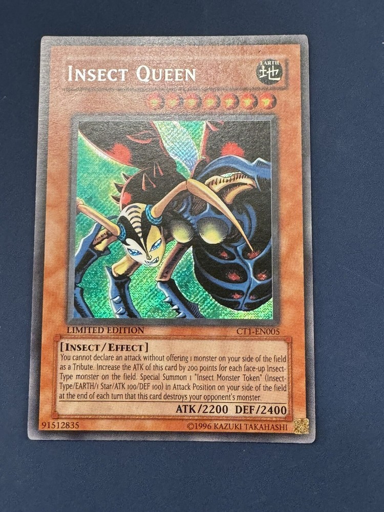 This limited edition Insect Queen from the 2004 Collectors Tins is a must-have for any Yu-Gi-Oh! fan. Its light color and Secret Rare rarity make it a highly sought-after card for collectors and players alike. This card is in near mint or better condition, making it a great addition to any collection. Its features make it a unique and valuable card in the world of collectible card games. Get your hands on this Insect Queen before it's too late!