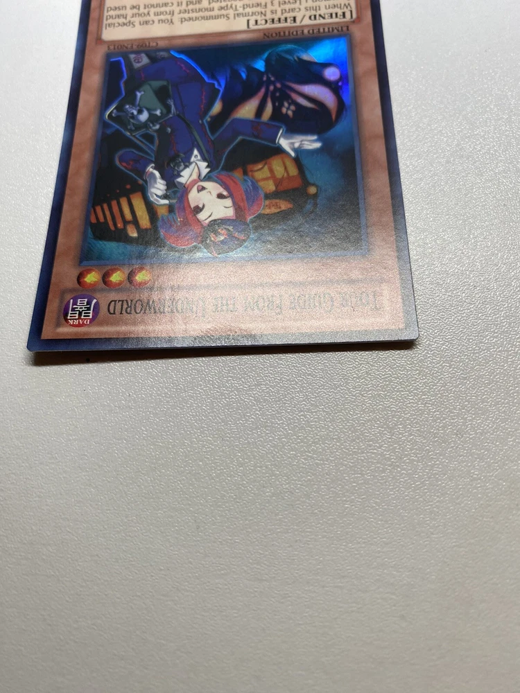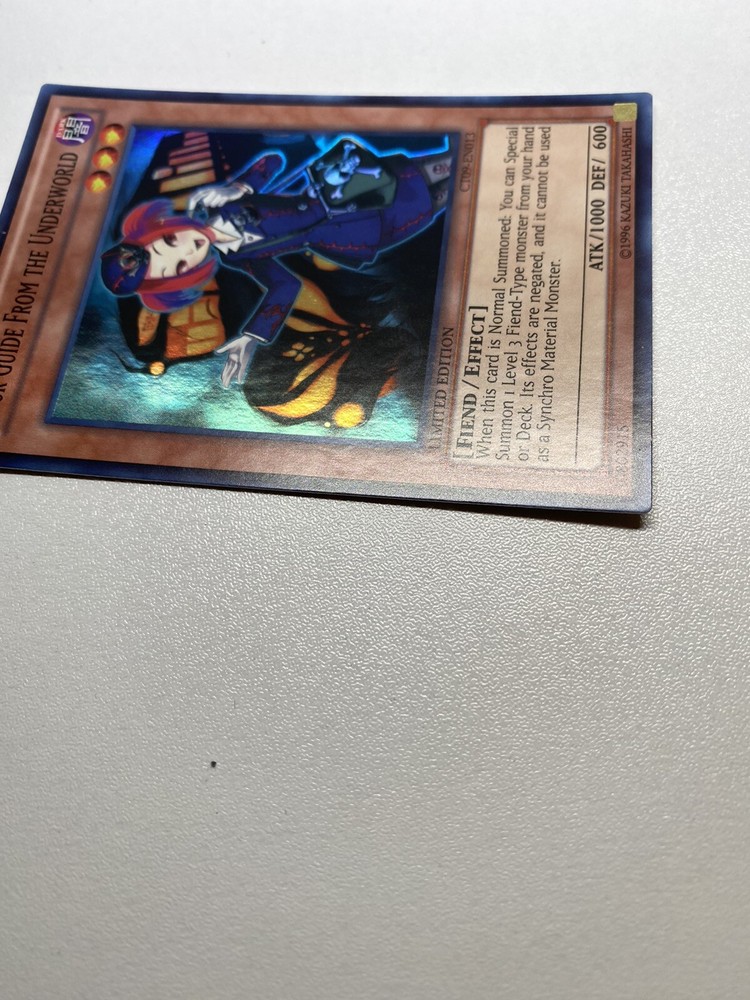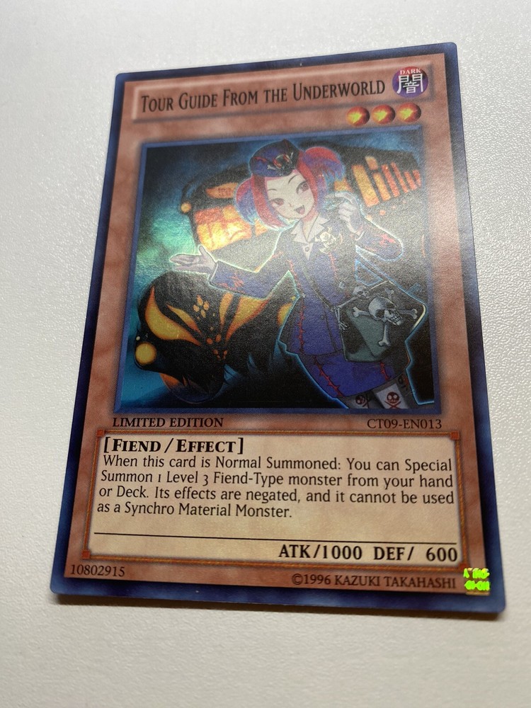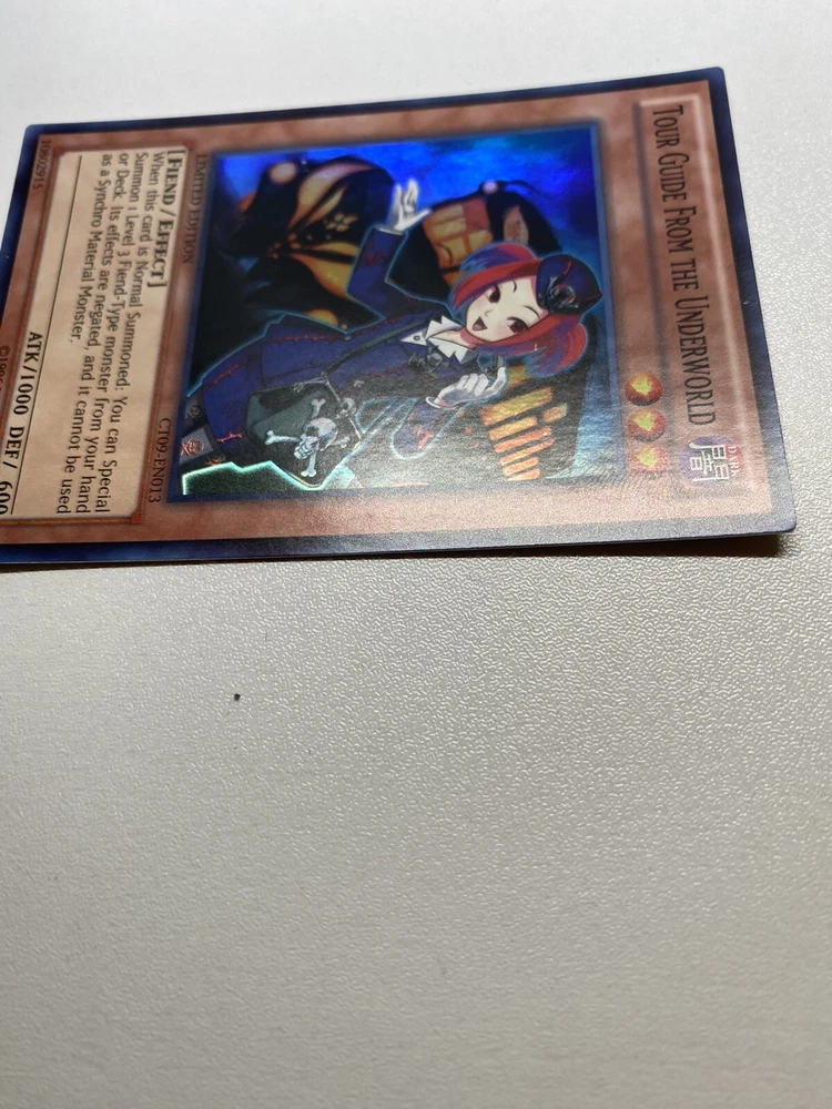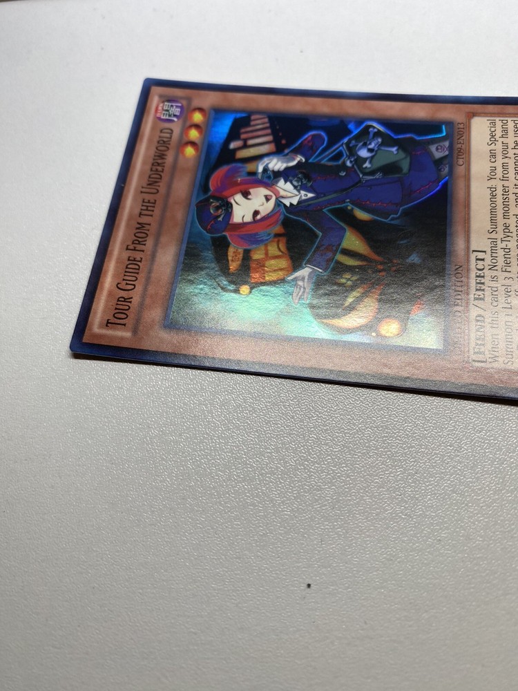 Yugioh Tour Guide From The Underworld Super Rare Limited Edition CT09-EN013 NM It has never been played. It is near mint or better. Check pictures to see details on condition of the card. Once I pulled it from a pack, I put it in a sleeve and just now taking it out to take pictures. “eBay International Shipping Program” and USA shipping only. No international shipping. I do combine/bundle shipping. I do use recycled shipping items to stay eco friendly for our beautiful earth. Please leave positive feedback, and I will return positive feedback for better customer satisfaction, thanks.