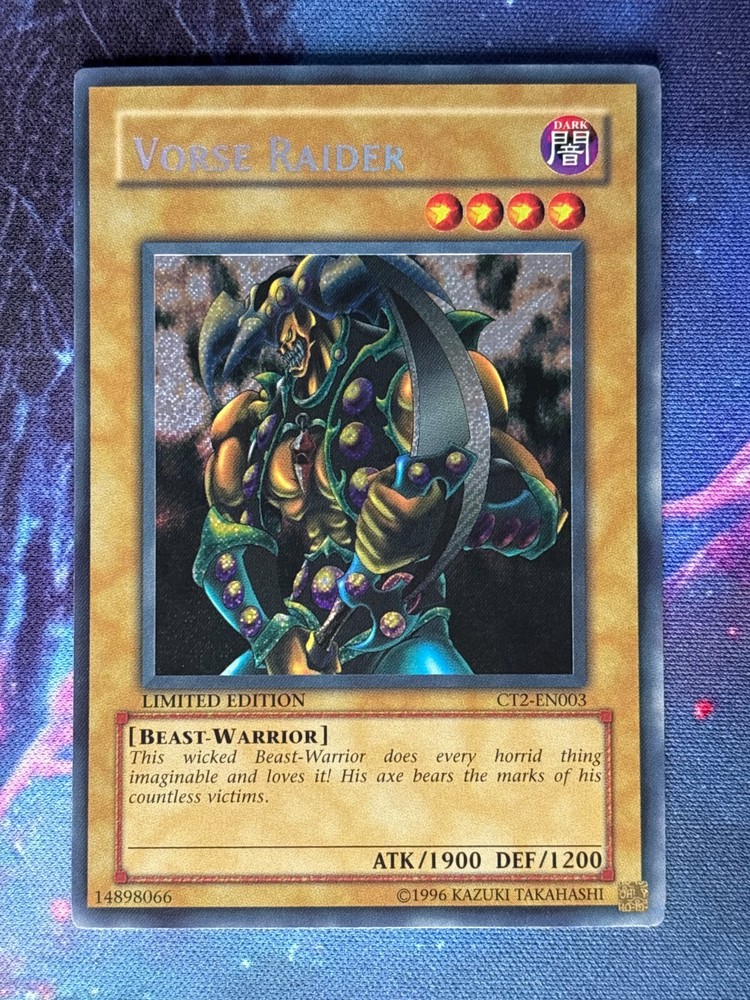 Vintage Vorse Raider - 2005 Empty Collectible Tin and includes the promo card. Can be displayed in a collection or used to store cards. See photos for condition, the tin has some light scratches but otherwise in great shape. Additional photos available upon request. Limited Edition Secret Rare - Vorse Raider - CT2-EN003 in Light Play condition. Front is great, some light scratches / scuffing on the back. Also, very light edgewear in a couple spots. Would look great in a binder. Please check out my other listings including other Collectible Tin bundles! The tin and cards will be shipped securely in a box with bubble wrap support. Combined shipping discounts are available if you purchase multiple listings. Due to the looming Canada Post strike, letter mail and all CP shipping options will be unavailable. All orders will be shipped with tracking via the cheapest alternative carrier and any savings from the flat fee will be refunded. I appreciate your understanding during this uncertain situation. All U.S. / International orders will continue to use calculated shipping and will include tracking.