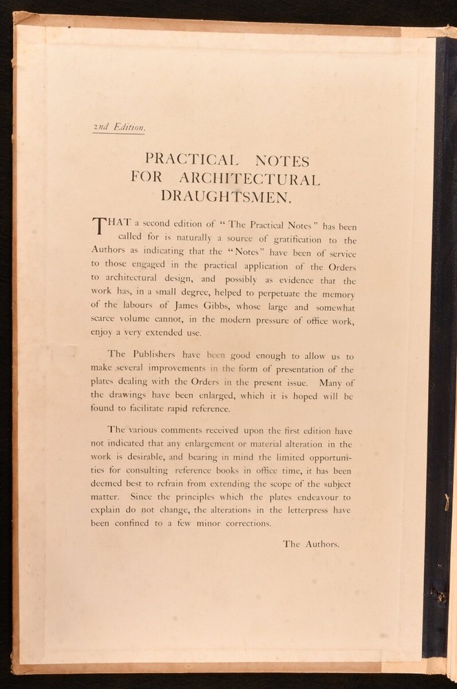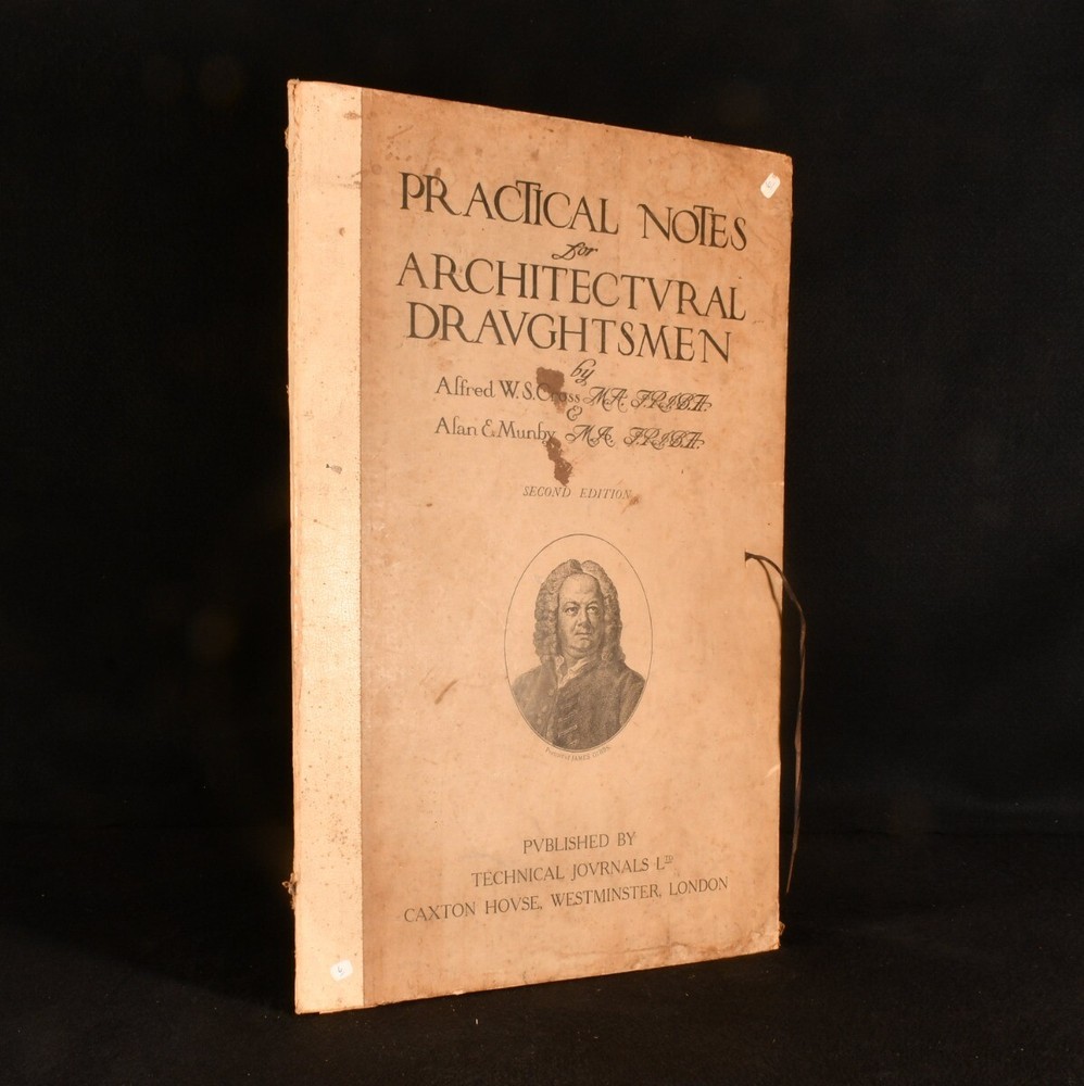 Click here to see our other books! Practical Notes for Architectural Draughtsmen Alfred W. S. Cross, Alan E. Munby c1920 Technical Journals : London 20" by 13" [27]pp SUMMARY A second edition copy of Practical Notes for Architectural Draughtsmen with illustrations. Illustrated,Publishers' Original Binding Overall Condition: Good This book weighs 1.5 KG when packed UK Postage: £ 3.99 US Postage: £ 23.99 EU Postage : £ 18.99 European Postage: £ 19.99 Asia Postage: £ 31.99 Worldwide Postage: £ 32.99 DESCRIPTION Practical Notes for Architectural Draughtsmen is by Alfred W. S. Cross and Alan E. Munby with this being a second edition copy. With twenty seven loose pages within a folder. With in-text illustrations. Collated, complete. CONDITION In the original hardback binding with a cloth spine. Externally, generally smart with some marks to the boards and a mark to the spine. Small stickers to the front board. Two of the three folder flaps are loose. Pages are bright and clean. Overall Condition: Good GLOSSARY OF TERMS Overall Condition (Dustwrapper condition rating is shown after that for the book itself, where a dustwrapper is present) Fine - Very well preserved copy showing very little wear Very Good Indeed - Only one or two minor faults, really a very attractive copy Very Good - Quite a wide term meaning no major faults but probably several smaller ones often expected given the age of the book, but still a respectable copy Good - Meaning not very good. Some more serious faults as will be described in the condition report under 'condition' Good Only - Meaning one or more faults that could really do with repair Fair - As with good only above but with other faults leaving a compromised copy even after repair Poor - Really bad and possibly seriously incomplete. We only sell books in this condition where their rarity or value makes them attractive none the less. Major defects will be described. GUARANTEE We offer a full money back guarantee on our descriptions. Please ask for details and conditions. We prefer PAYPAL. If you pay via PAYPAL we will post the item off the same or the next working day with the postage you have selected. Please note we cannot accept USD cheques