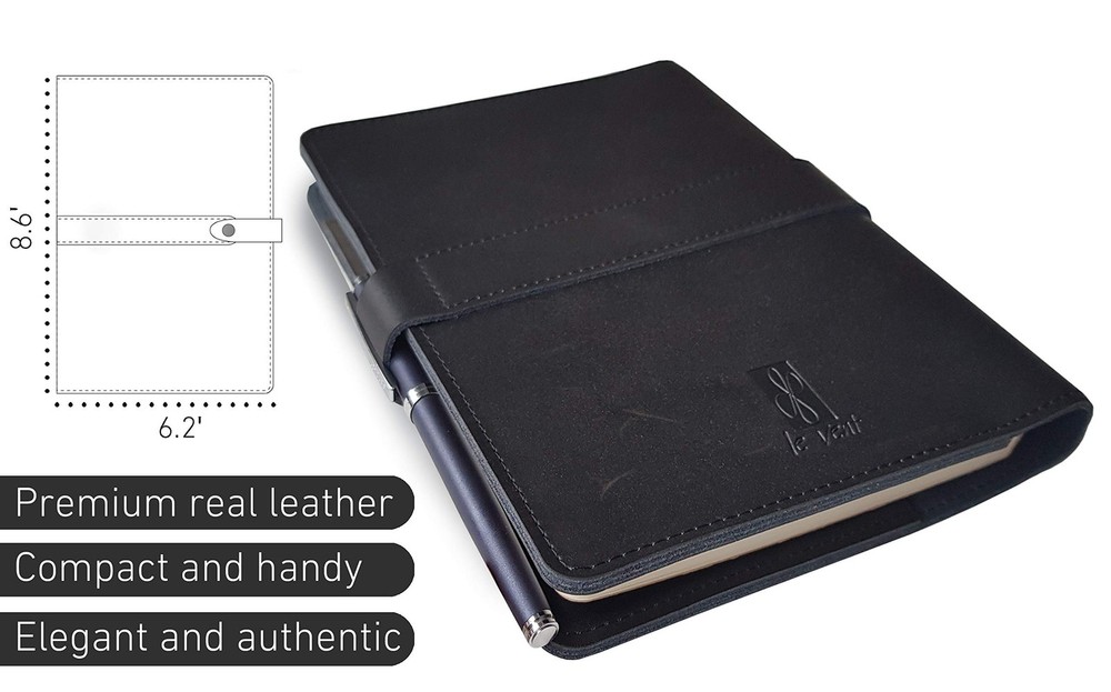 ELEGANT DESIGN - Our black leather journal has an elegant and minimalistic look that suits all active men and women. Leather quality and kraft paper make writing a joyful experience! Organize your notes and ideas with our stylish leather bound journal. DURABLE & LONG-LASTING - This journal for writing by le vent is handcrafted using natural oil and hot-pressed to be sturdy, ensuring it can be used for years to come. Our refillable journal is loved for its durable leather, perfect size, and thick, lay-flat notebook pages that don't bleed through. Write, plan, and create ideas with our beautiful black journal. MULTIFUNCTIONAL - Our refillable leather notebook is multifunctional and can be used as a journal for travel, drawing, poetry, business, sketching, or as a leather planner. It includes a pen holder, an inner pocket for pads and card slots, and can replace most standard paperback 5x8 inserts. A clasp padfolio is included to effectively hold your inserts. The leather notebook cover is 8.6'x6.2'x0.7', and the A5 notebooks are 8.2'x5.5'. BONUS ITEMS - Discover the box inside the journal that includes lined and blank notebooks with 200 pages each (80 gsm paper), a leather bookmark, and a leather key ring as our bonus to you. CUSTOMER SUPPORT - If you have any questions or concerns, please contact us, and we will do our best to assist you. If your journal is missing a leather bookmark or key ring, please let us know.