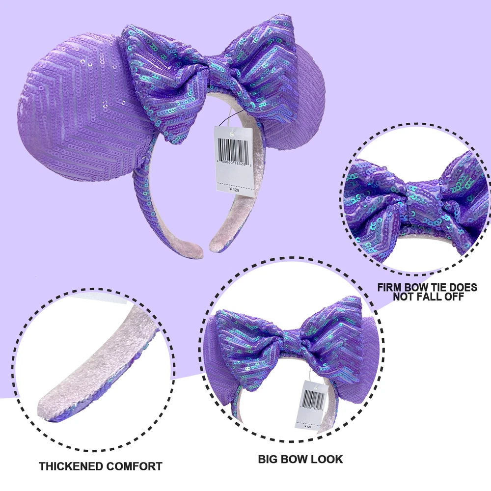 lridescent Purple Lavender Sequin Disney- Elegant Headband Minnie Mouse Ears Description : SIZE: 25CM wide * 21CM long 100% Brand New Size: One Size Suit Most Kids or Adult. Package included: 1 X headband About this project 1. Unique style: Unique design style, handmade, very shiny. 2. Comfortable to wear: The mouse ear headband is widened and made of anti slip materials, making the headband comfortable and not slipping. The overall design is beautiful and more shiny. 3. Widely used: Suitable for various occasions, whether you are attending birthday parties, cosplays, makeup balls, Christmas, etc., this headband is the perfect choice for you. 4. Perfect Gift: This unique bow headband is the perfect gift for a partner, friend, child, or sister. Attention: The images are the taken by the item, but because of the light when taking photos, the color of the photos is a bit different from the item. Thank you! 1. We accept payment via PAYPAL ONLY. 2. S&H will be determined based upon the SHIP TO address. 3. Please list your special requests (color, packages, etc.) in the PAYPAL NOTES SECTION when you make payment. 1.Items will be shipped within 1-3 business day when we received payment. 2.We only ship to confirmed ebay addresses. Your ebay address MUST MATCH your Shipping address. ★If there are any problems with our products, Please feel free to contact us. We will always here to solve them for you. You don't need to contact Ebay or Paypal. And please DO NOT leave us Neutral / negative feedback. It won't help the problem to be solved. And it is the worst hurt to a seller. We should try our best to make a happy easy transaction. ★If you are satisfied with our products and our service, please tell your friend and leave us positive feedback. If you are not satisfied with our products or service, please DO tell us. ★ebay Money Back Guarantee: After receiving the item, you could contact us within 30 days. Get the item you ordered or get your money back. Covers your purchase price and original shipping. Why choose from us? 1.100% Authentic. 2.Brand new (Unless the description says used), High quality,Low Price. With all Original parts and authentic,Original manufacturer's serial numbers intact. 3.Intimate, fast customer service.
