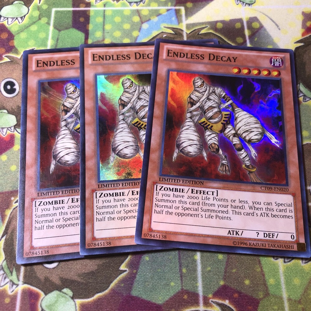 x3 Endless Decay - CT09-EN020 - Super Rare - Limited Edition. Condition is Ungraded. Shipped with USPS Ground Advantage....
