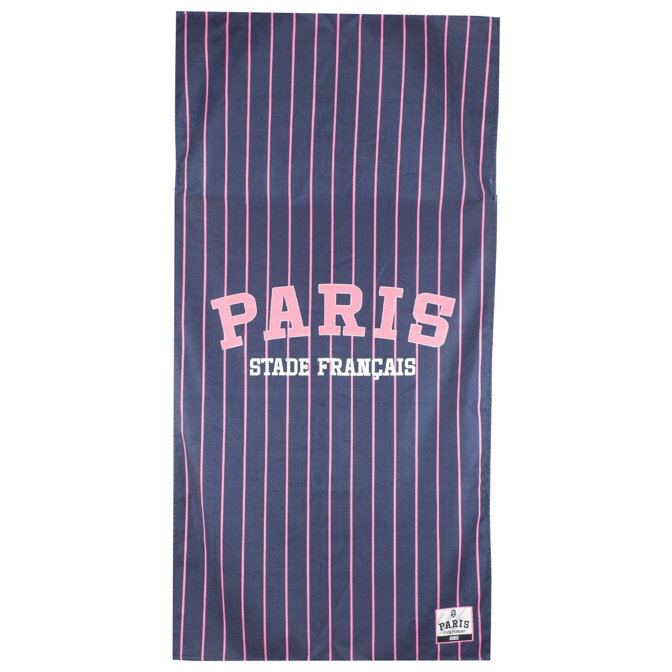 Drap de plage SF Paris SummerDécouvrez notre nouveau drap de plage Stade Français Paris pour vous accompagner cet été. Ce drap de plage bleu marine avec des rayures roses, reprenant les deux couleurs emblématiques du Stade Français Paris. Vous pourrez retrouver l’inscription du Stade Français Paris au centre du produit avec le badge Stade Français Paris en bas à droite du produit, accompagné des trois éclairs symboliques.Description produit :Couleurs : Bleu marine avec des rayures rosesComposition : 50% coton / 50% polyester