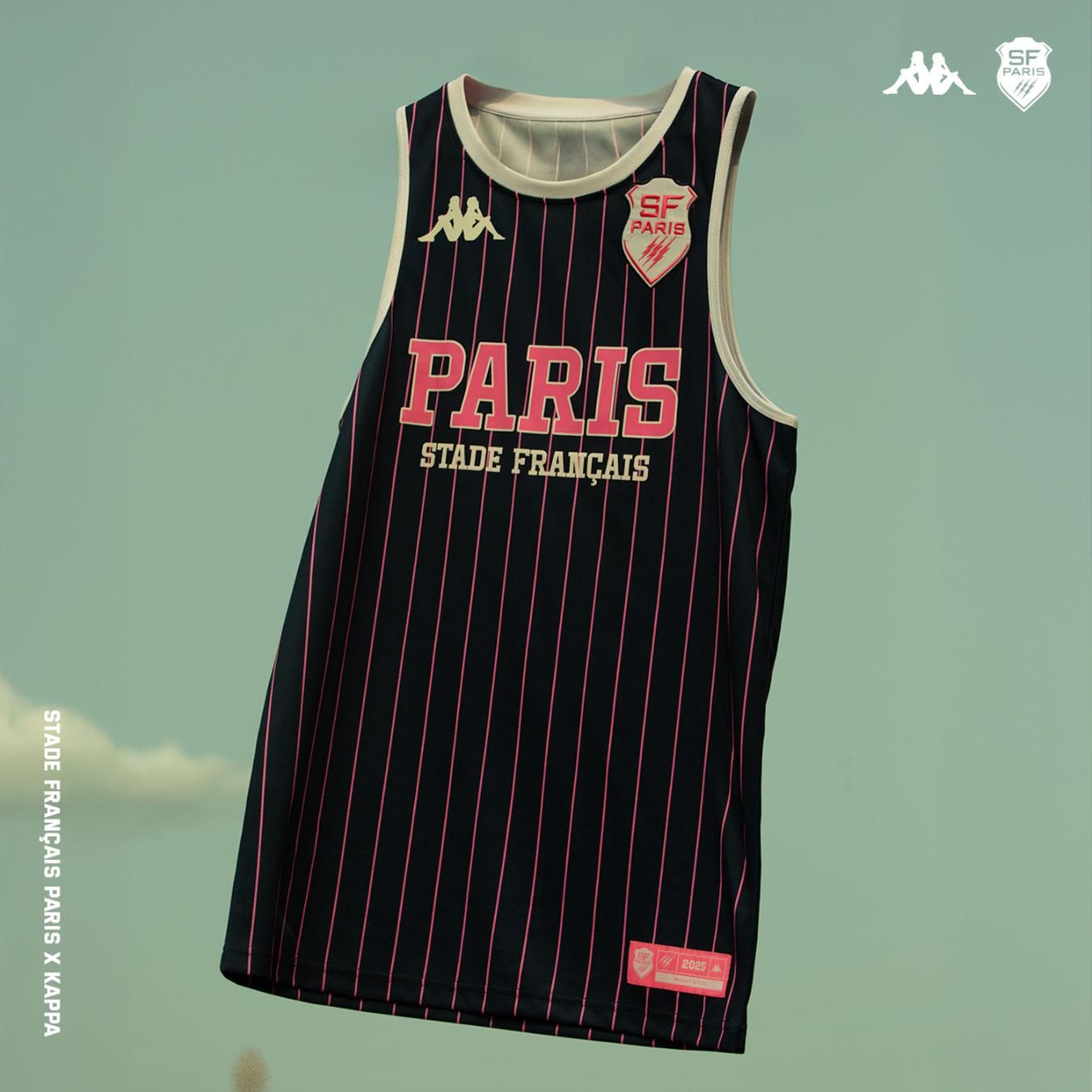 Maillot de Basket Stade Français Paris Street SummerKappa et le Stade Français Paris s’associent pour une collection Street Summer exclusive qui célèbre l’esprit combatif du rugby et l’élégance urbaine. Inspirée par l’intensité des matchs au cœur de la capitale, cette gamme lifestyle incarne le style italien de Kappa mêlé à l’audace légendaire du club parisien.Arborant fièrement les couleurs du Stade Français, le débardeur supporter devient l’emblème d’un été rugbystique, vibrant et stylé. Affichez votre passion pour Paris, le rugby et le style avec cette collection incontournable.Description produit :Coloris : Bleu marine avec des rayures roses. Logo blanc avec l’écriture en roseComposition : 100% polyester